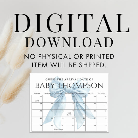 Editable Elegant Blue Bow Baby Shower Due Date Calendar Canva Template